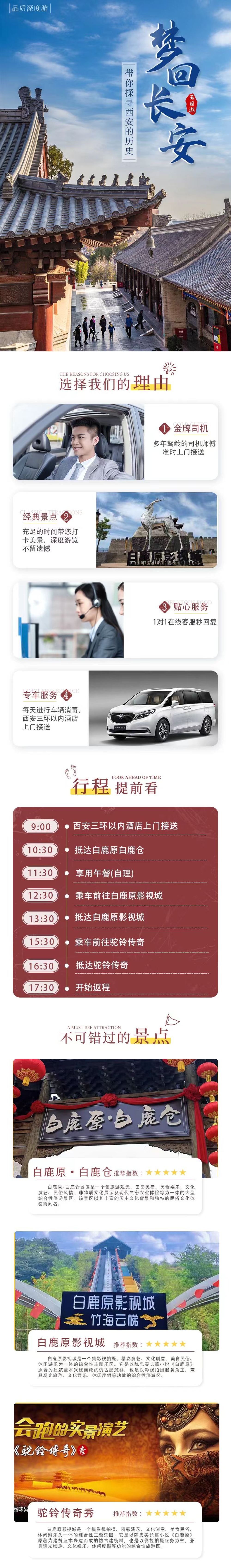 西安市三环以内上门接送,出发时间可选(7/8/9/10/11点)-白鹿原影视城(路程1小时左右-参观3-4小时左右)-驼铃传奇(1小时左右-演出1小时)-返程送酒店/大唐不夜城/钟鼓广场/永兴坊任选