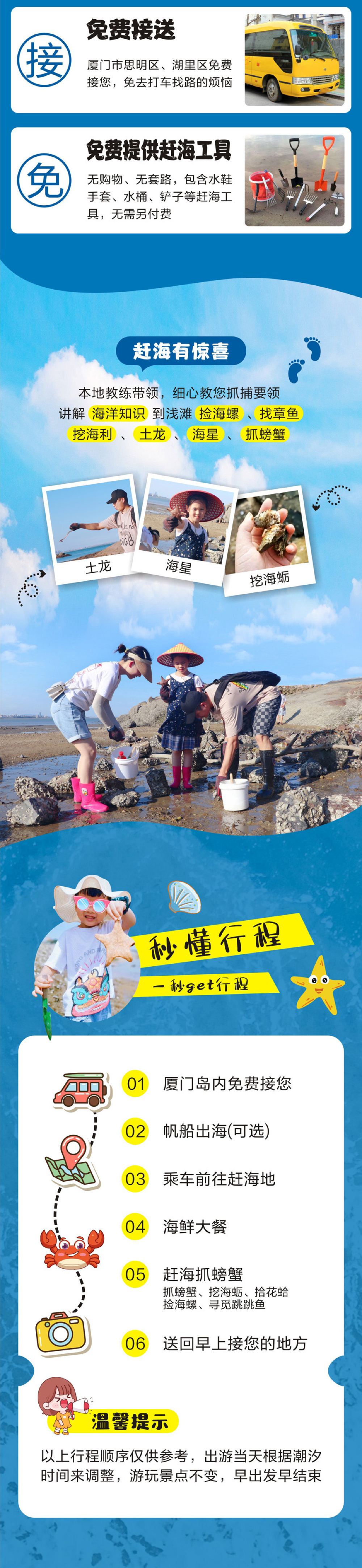 厦门市区趣味赶海一日游 含午餐+赶海工具+帆船出海可选亲子游【【亲子扮渔民生活】开启趣味赶海抓虾捕蟹,渔民体验,亲子互动赶海,趣味游玩,纯玩无购物,海鲜特色餐】