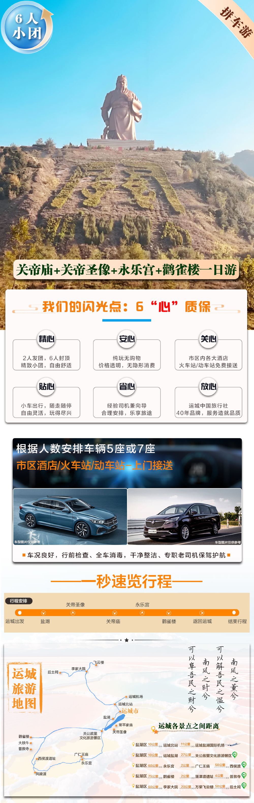 【拼小团】关帝圣像+解州关帝庙+鹳雀楼+永乐宫一日游【盐湖区各大酒店、运城北站、运城火车站免费上门接送服务;】