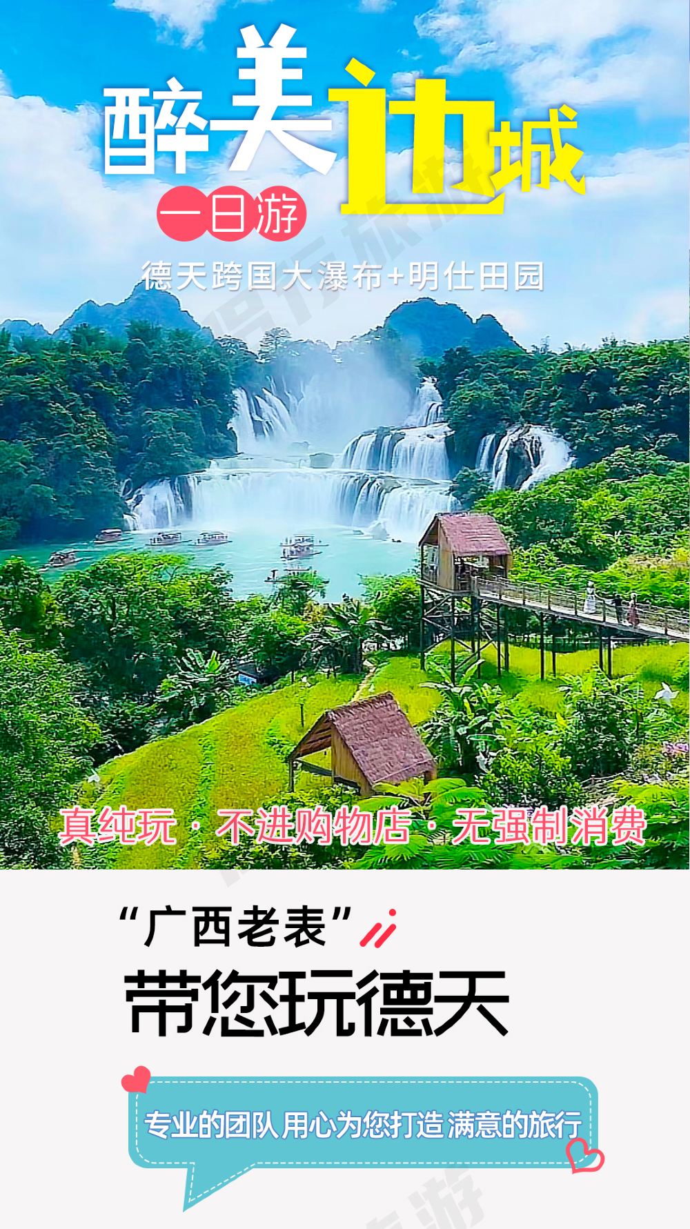 德天跨国瀑布+明仕田园一日游【成人含明仕竹排游+德天接驳车】【● 一价含明仕,成人已含明仕田园竹筏游票、德天景区接驳车35元;】