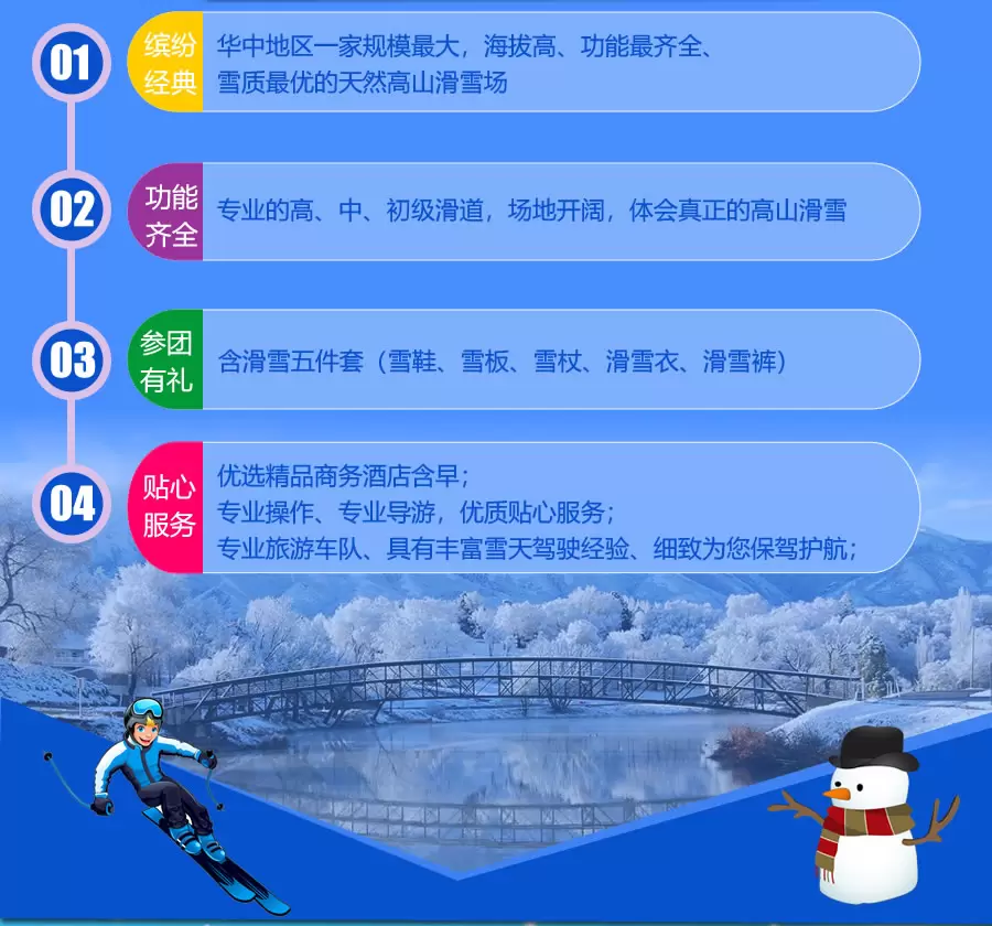 神农架神农架国际滑雪场二日游【含滑雪五件套+舒适住宿1晚+宜昌往返交通+优秀导服】
