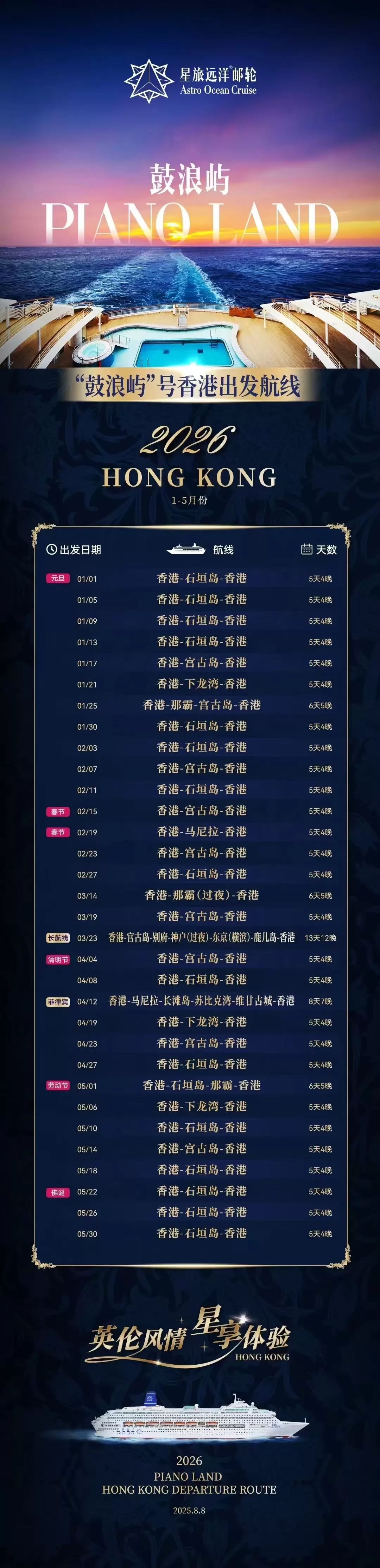 星宇鼓浪屿号邮 轮|香港石垣岛下龙湾济州冲绳 免签