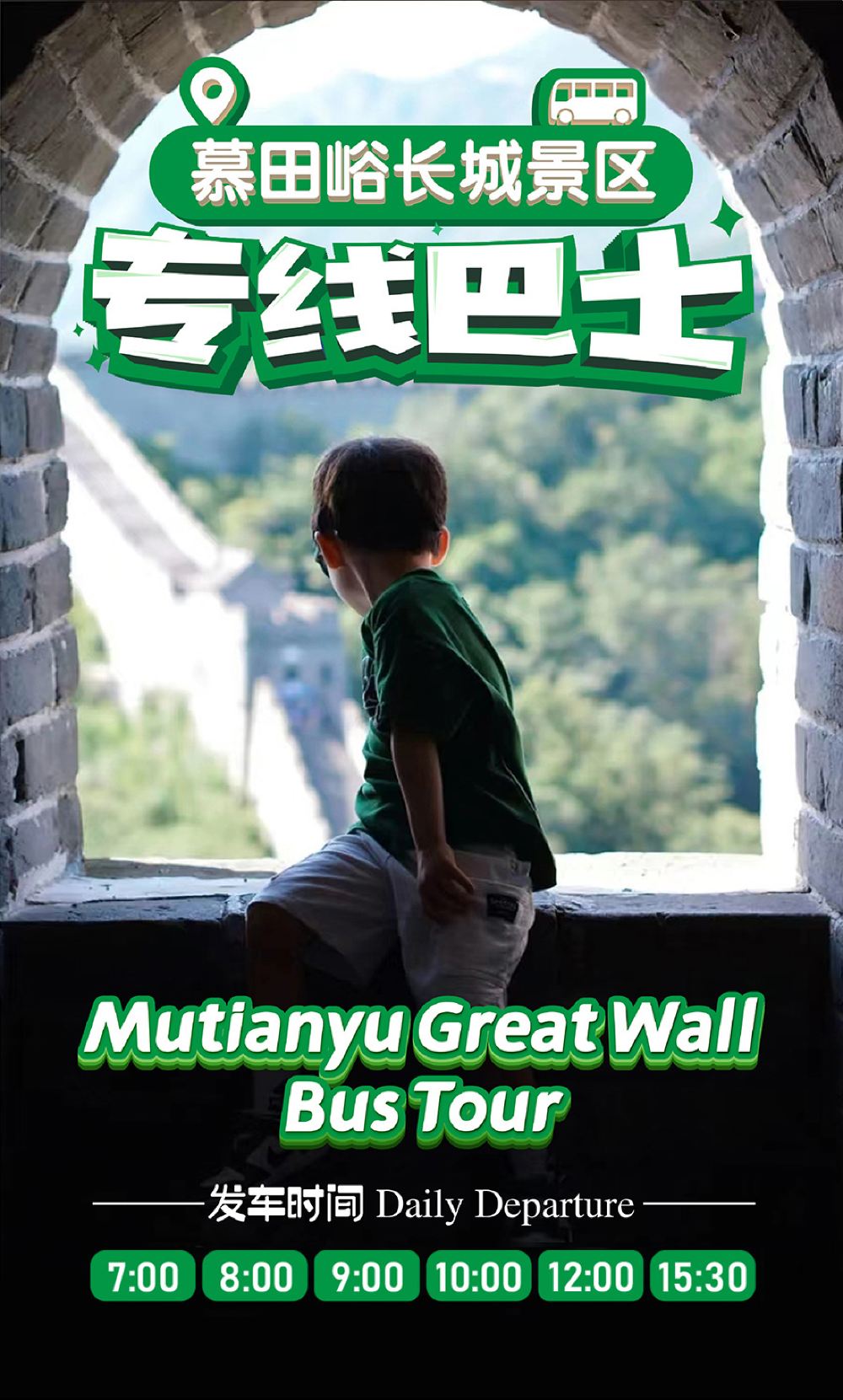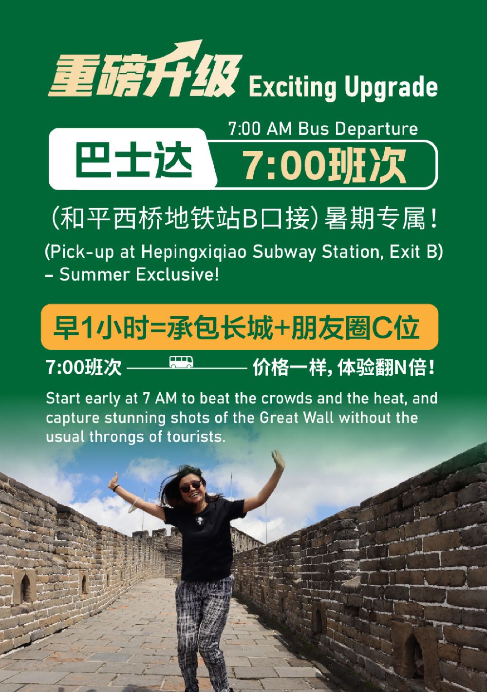 慕田峪长城一日游【巴士达7-12点+5小时游览观光+无购物】【[行程亮点]流水发车,多班次任选,一站直达,5小时超长景区游览。】