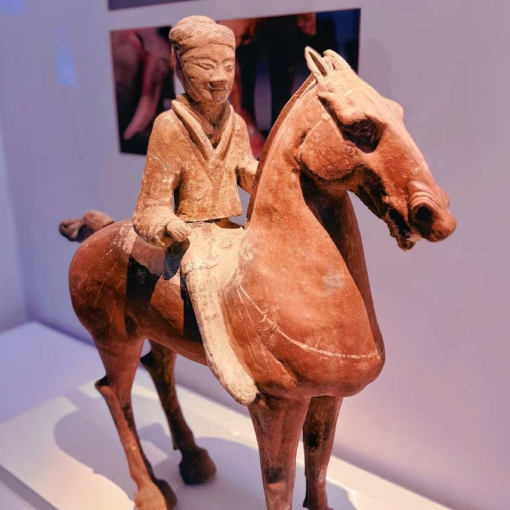 ▲ 【咸阳博物馆】“比兵马俑更早的皇家陪葬天团!”1965年杨家湾出土的迷你军团一1965个步兵+583骑兵,每个只有50cm高却细节炸裂!指挥官俑的红绿战袍、骑兵战马的肌肉线条,连盾牌上的彩绘都清晰可见!瞬间脑补霍去病横扫匈奴的战场 2玉仙人奔马 和田羊脂玉雕刻的飞天神马,马踏流云+仙人手持灵芝,连马翅膀的羽毛都根根分明!据说出自汉元帝陵,古人修仙梦全在这块玉里了~ 3。错金银鼎 “战国版爱马仕!”戚夫人墓出土的青铜鼎,金银镶嵌的云纹美到窒