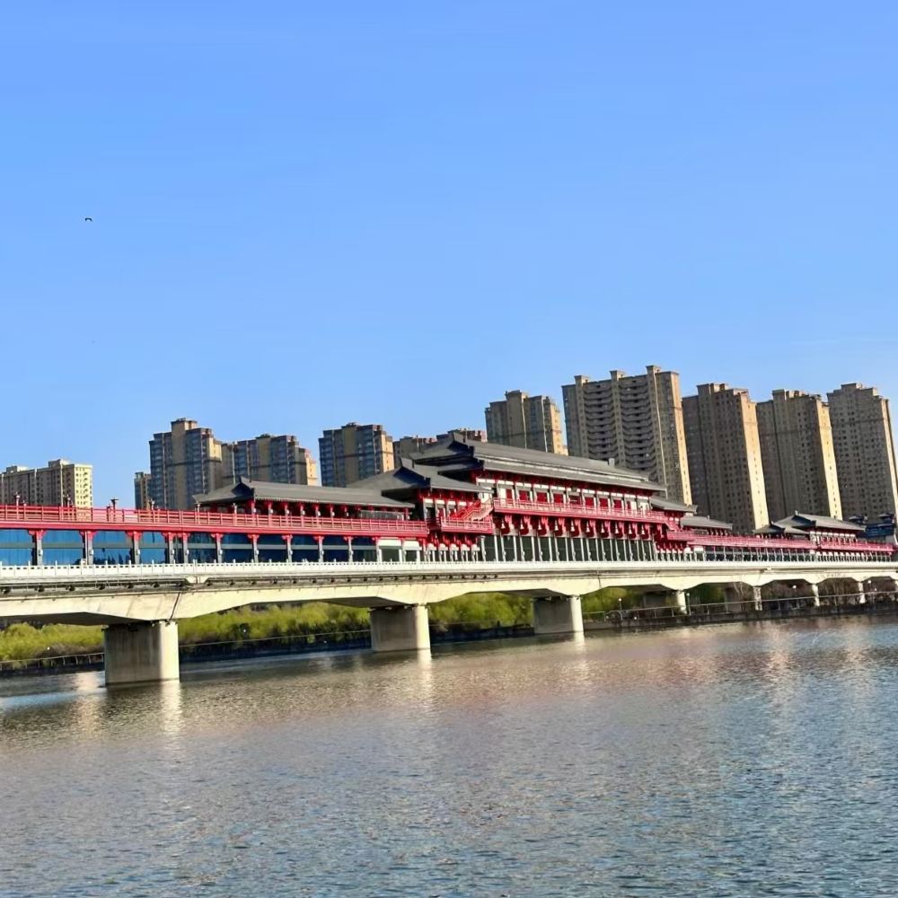 ▲ 【古渡廊桥】 必体验亮点: 1.双层古风桥红墙黛瓦+20尊秦代名人雕像,白天看建筑细节,晚上灯光亮起像穿越回秦朝! 2.悬浮观景台站在渭河上空的透明玻璃观景台,全景模式直接出水墨风大片,汉服姐妹冲! 3.光影黑科技20:30准时开启的3D光影秀,兵马俑会"换装",阿房宫幻影在河面浮现,太酷了!