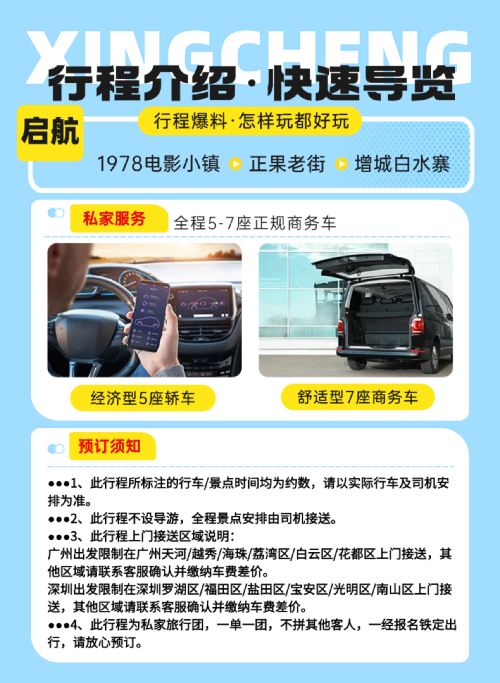 私家团上门接送|广州增城白水寨+1978电影小镇+正果老街【[私家旅行]一单一团,不拼客,畅享专属旅行;5座/7座车上门接送,专职司机护航】