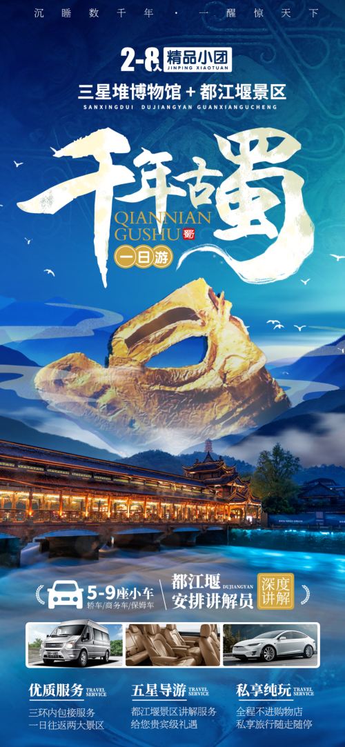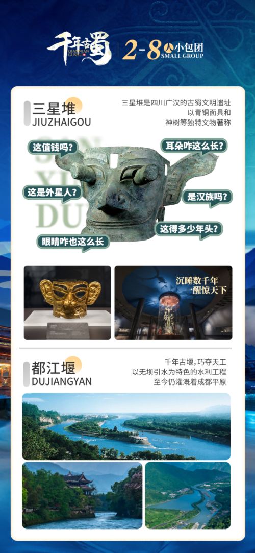 千年古蜀 三星堆 都江堰一日游2-8人精品小团一日游【深度讲解】