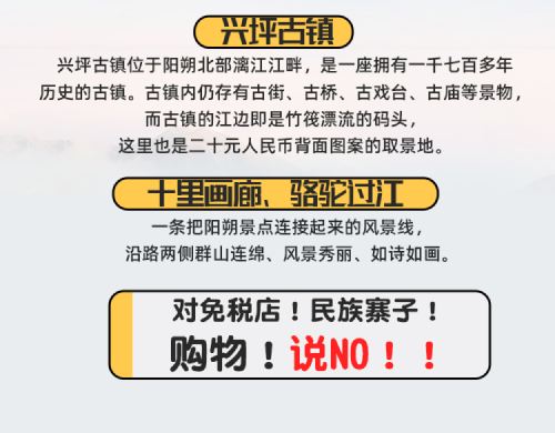 套餐C:漓江四星游轮 + 兴坪古镇 + 打卡20元背景图 + 遇龙河徒步+十里画廊;