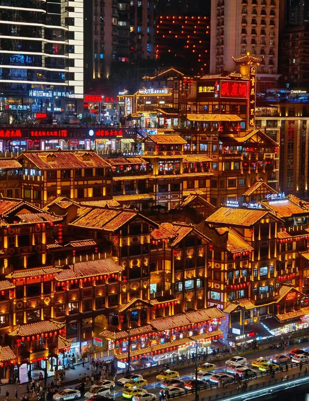 ▲ 洪崖洞 :以巴渝传统建筑特色的“吊脚楼”风貌为主体,依山而建,夜晚灯火辉煌,是重庆的标志性景点之一。