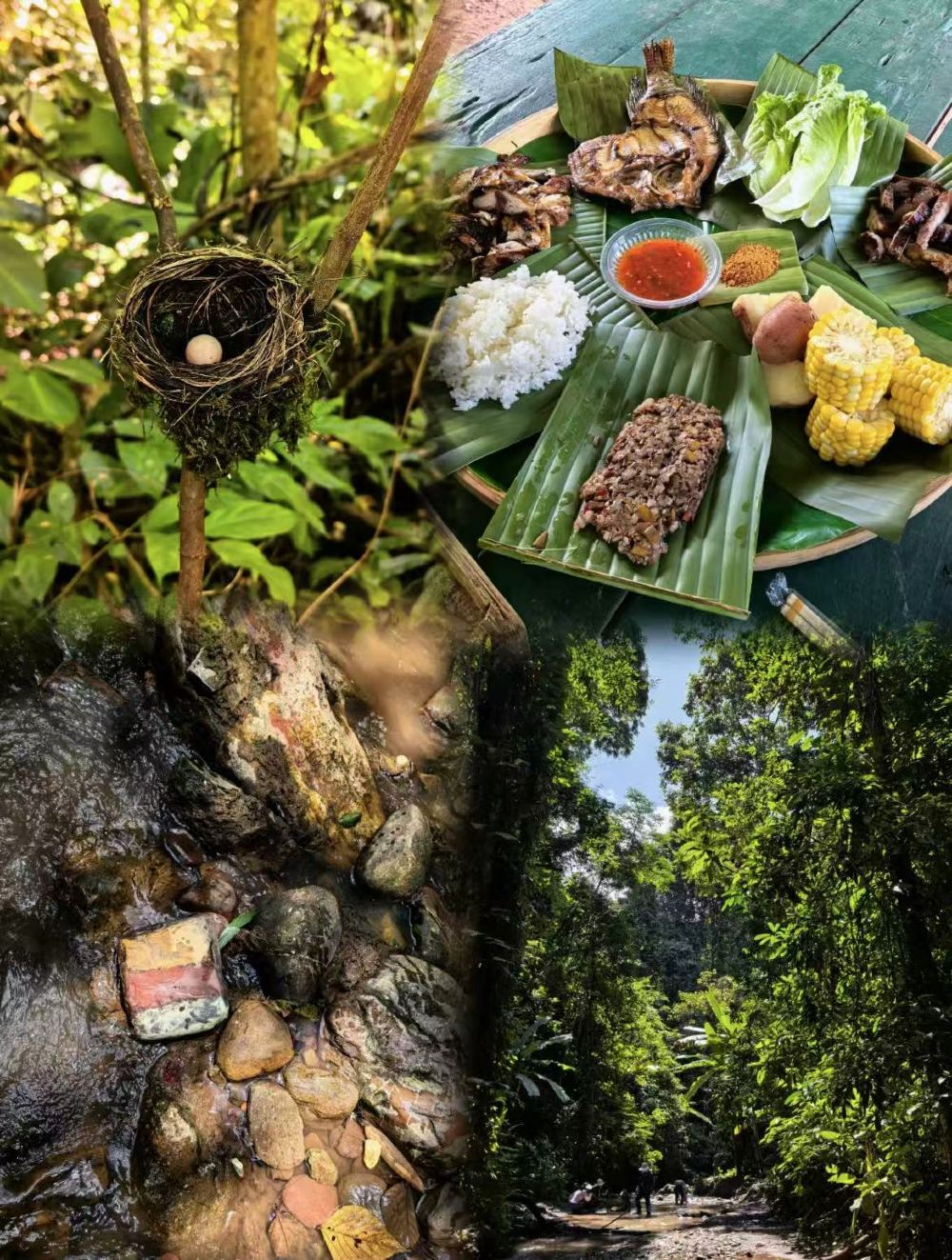 ▲ 徒步为拼团人数10人以内 基诺山雨林徒步11项体验 1:【深入热带雨林,开始徒步溯溪】 2:【寻找天然矿石原料画"野人妆"】 3:【丛林穿越 雨林植被大讲堂】 4:【体验雨林秋千,感受惊险与刺激】 5:【攀爬榕树树降,做一次空中飞人】 6:【竹筏穿梭雨林,GET野外技能】 7:【在雨林中享用基诺族风味大餐】 8:【枯木逢春 打卡出片】 9:【抓小鱼?、抓螃蟹?】 10【品尝原生态"山林之味"】 11:【爆浆柠檬味的黄金蚁】 PS:水路占比达到75%,向导都是当地基诺族土著,抓鱼抓螃蟹是季节性的。