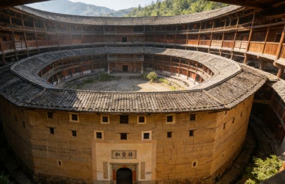 ▲ 和贵楼,和贵楼建在沼泽地上,用 200 多根松木打桩、铺垫,历经 200 多年仍坚固稳定。楼内天井卵石地面,踩上去会产生涟漪般震动。此外,楼中两口水井,相距仅十八米,井水水位均高出地面,南边水井清澈见底,北边水井混浊发黄、污秽有毒,形成鲜明对比。楼内学堂挂着两块匾牌,分别是林森颁发的 “兴学敬教” 匾牌和国民政府侨务委员会委员长陈树仁赠送的 “兴学利侨” 匾牌,见证了和贵楼的历史与文化
