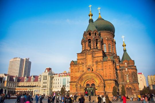 ▲ 索菲亚大教堂果然名不虚传,作为哈尔滨的地标性建筑,满满的异域风情,站在广场上仰望金色洋葱头圆顶,瞬间有种身处欧洲的错觉。