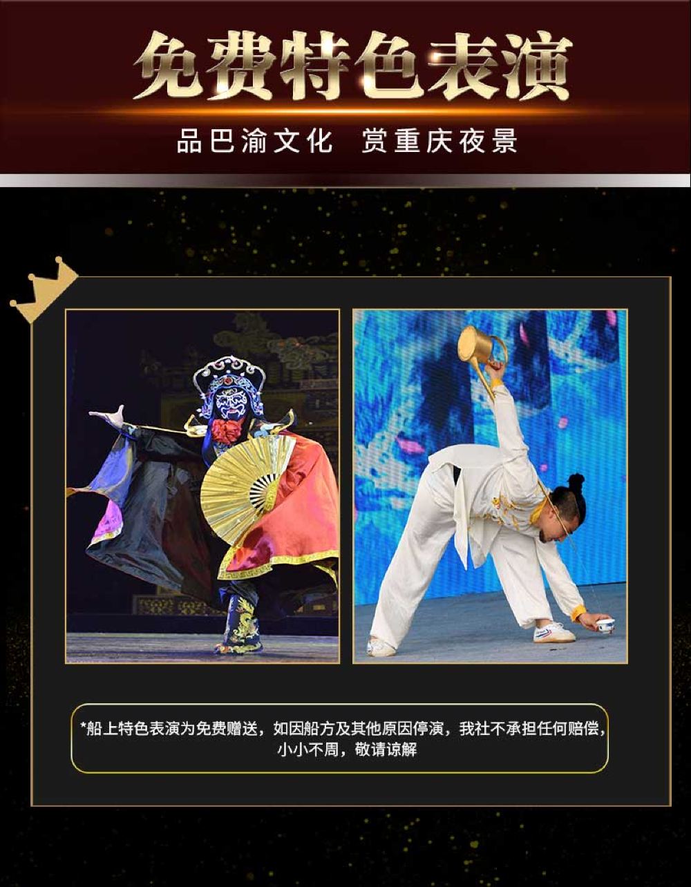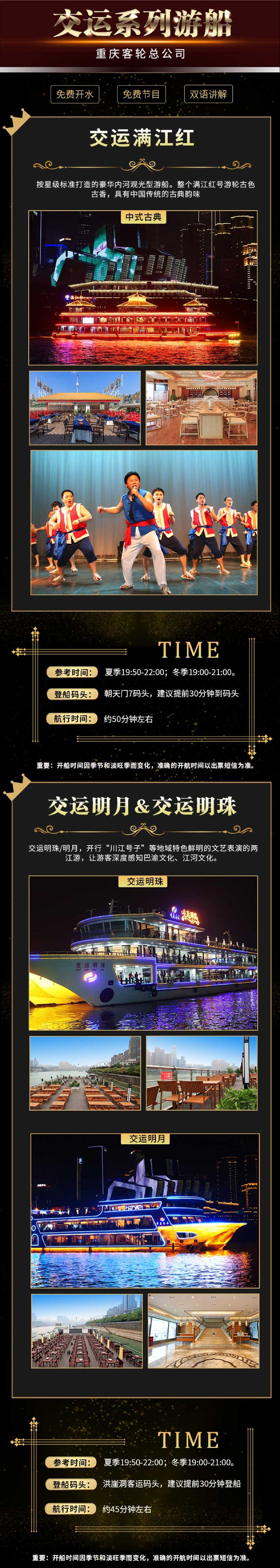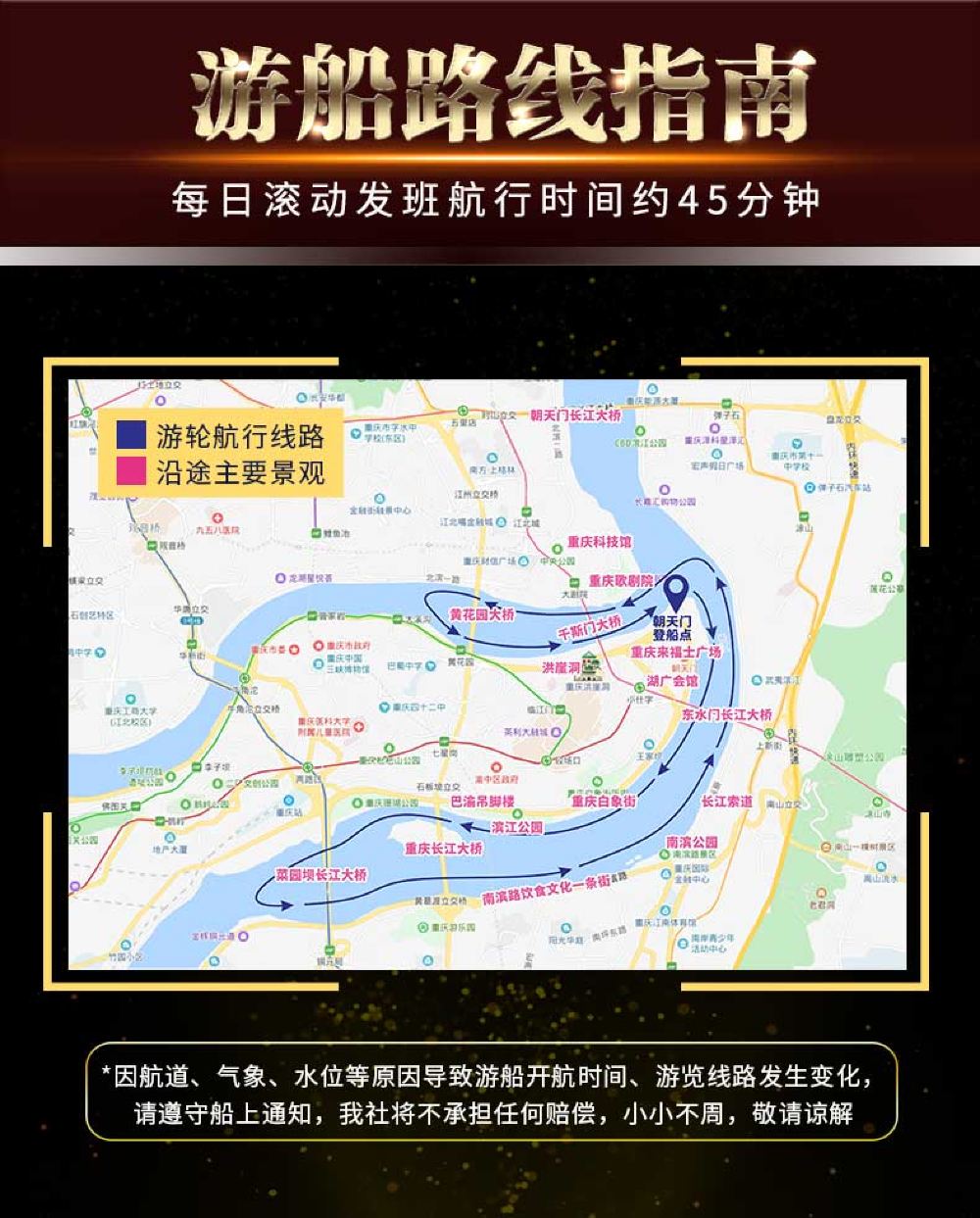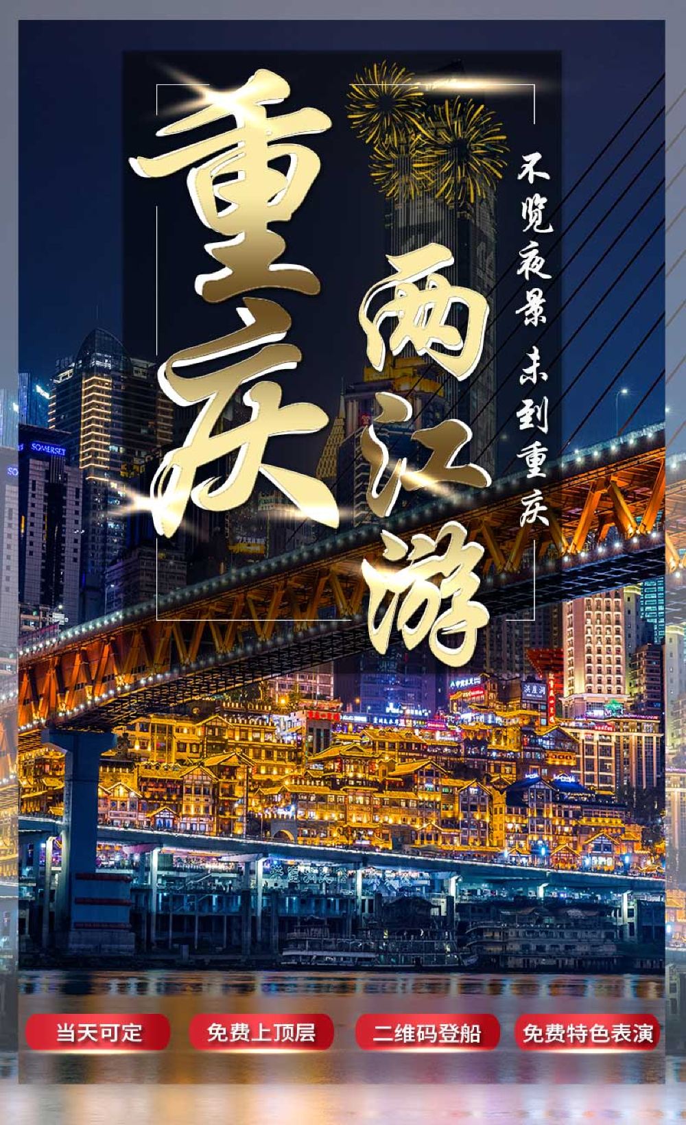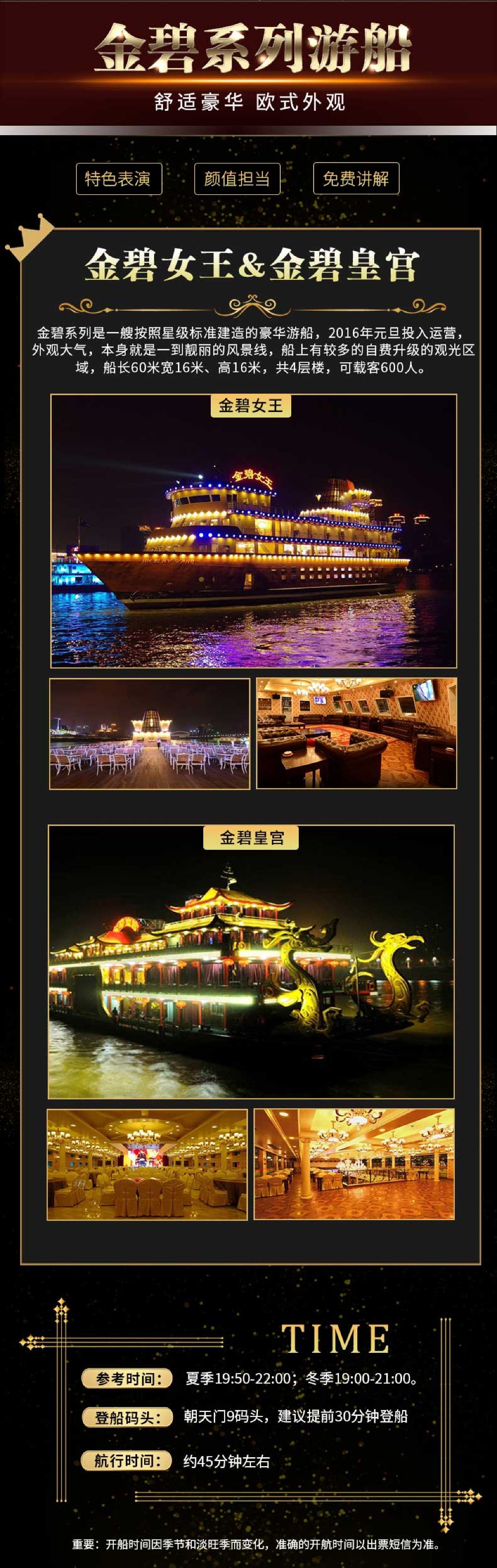 重庆两江游夜游游船【朝天门/洪崖洞登船任选+免取票登船】【[免票人群]1.2米以下免票,每名成人限带1名身高1.2米以下的儿童免费乘坐,节假日需咨询客服;】