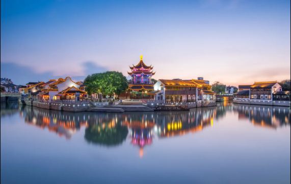 ▲ 山塘街西北端至虎丘,东南端在阊门,街道与山塘河并行,一座座古桥横跨河面,石板街两侧是粉墙黛瓦的老房子和林立的店铺。晚上,亮起的红灯笼倒映在河里,适合拍照。也可以乘游船,或是找家茶馆喝茶、听评弹。
