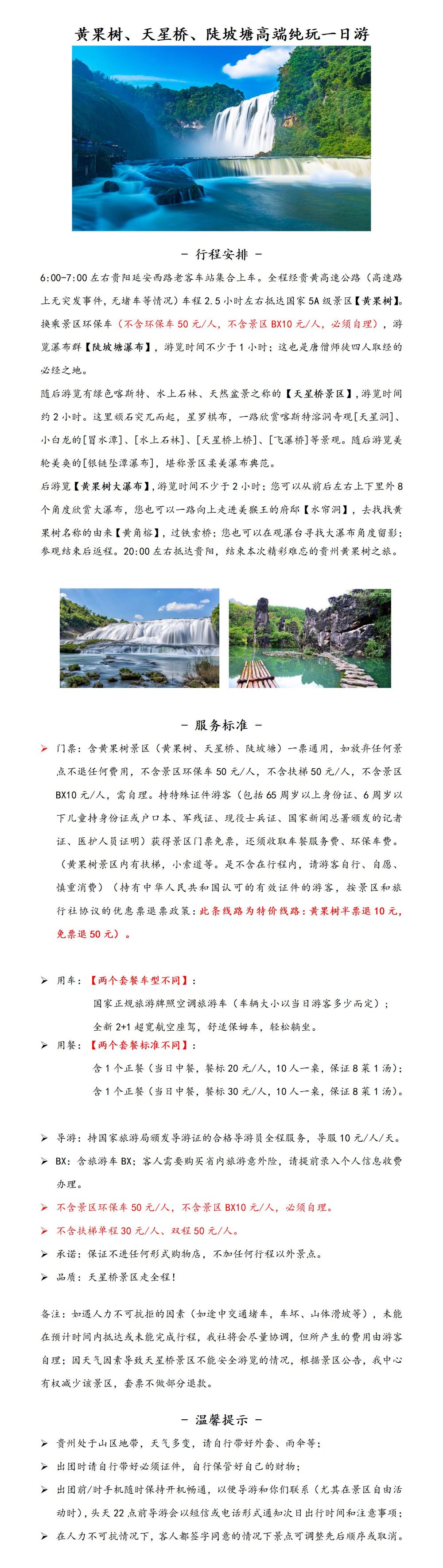 黄果树、天星桥、陡坡塘高端纯玩一日游【车型可选·纯玩】