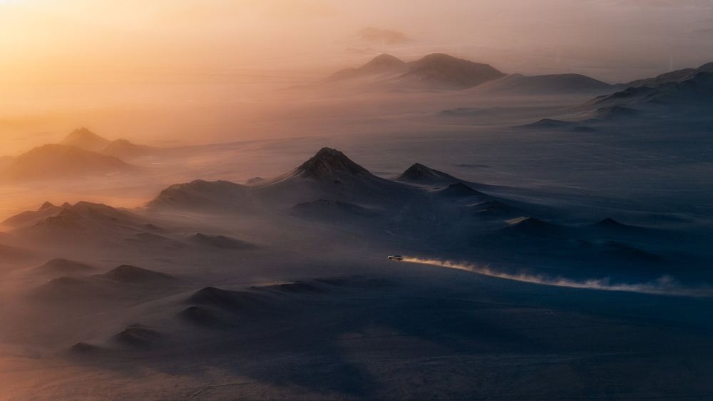 ▲ 黑独山位于青海省海西蒙古族藏族州茫崖市冷湖镇约13公里处,是一处小众且未被过度开发的自然景观。在日出/日落时分,金色阳光洒在黑色山体上,光影效果极美;阴天时,低饱和度的天气则凸显出黑独山的水墨质感。