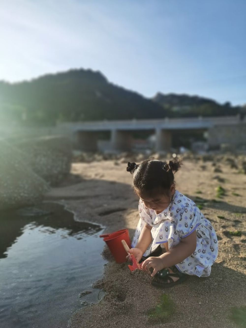 ▲ 青岛赶海小记~小宝贝专注挖沙,山海作伴,阳光正好,收获童趣满筐