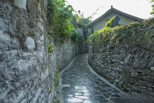 ▲ 走进背街(《寻枪》取景地),青石板与片石墙相映,光影里尽是黔中旧时光。