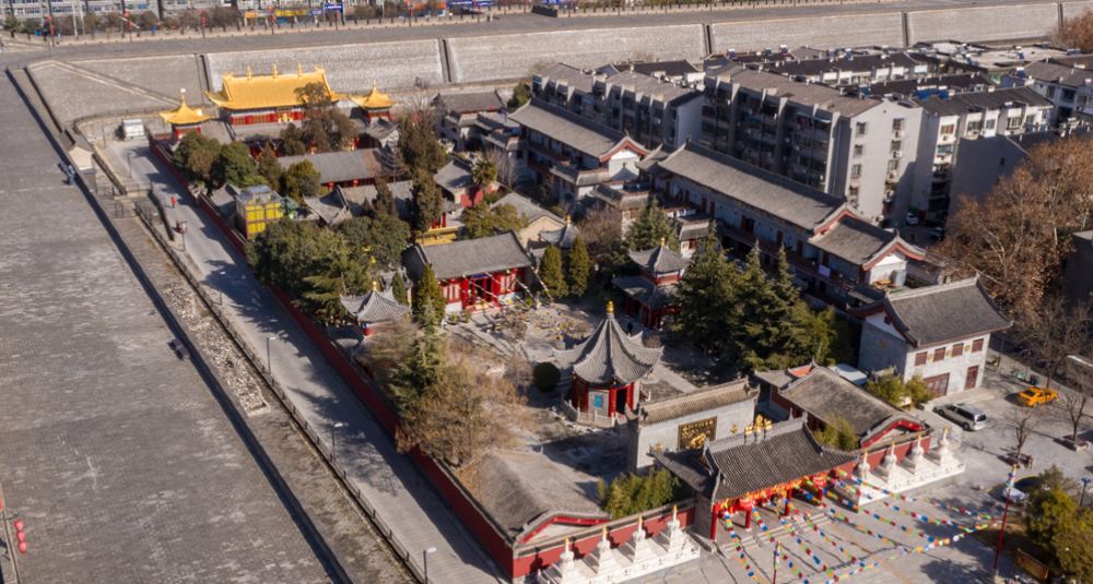 ▲ 广仁寺(GuangRen Temple [31]),又名喇嘛寺 ,位于中国陕西省西安市广仁寺路1号, 坐落在西安明城墙内西北角。广仁寺是康熙皇帝在西巡西安时自己出资创建的藏传佛教寺院,也是清王朝建立的第三座皇家喇嘛教寺院。 广仁寺整体建筑为标准的中原合院,以蒙古族文化符号为装饰, 占地面积为16亩,有观音殿、绿度母殿、千佛殿、藏经阁四大殿,整体建筑群300余间。