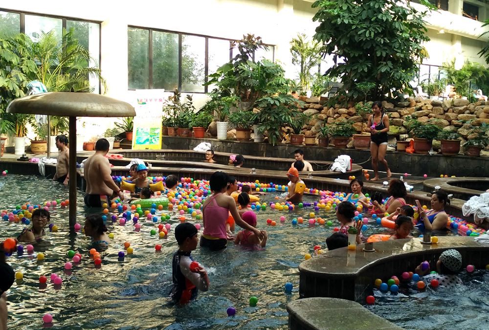 ▲ 【威海天沐温泉】“天沐温泉”温泉区包括室外森林养生 温泉和室内温泉SPA馆,可同时容纳1500人沐浴温泉,日接待量可达上万人。室外温泉区包括“鼋山五福泉”、“鼋水六德汤”、“美芦荟温泉区”、“森林静泡区”、“草本养生谷”、“SPA动感温泉区”、室外无边界游泳池、石板温泉、亲亲温泉鱼疗等,共设有66个室外特色功能温泉浴池,供游客尽情享受。