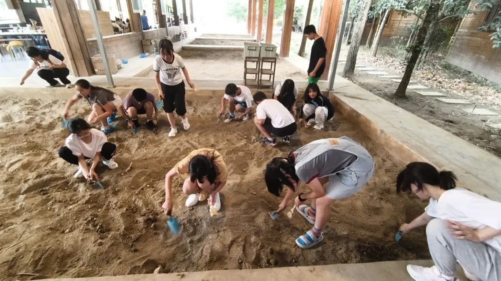 在专业老师的带领下来到逼真的考古现场,深入了解三星堆器物是如何出土的,在真实复原的考古坑中,按照考古发掘的流程规范,发掘高度还原的器物