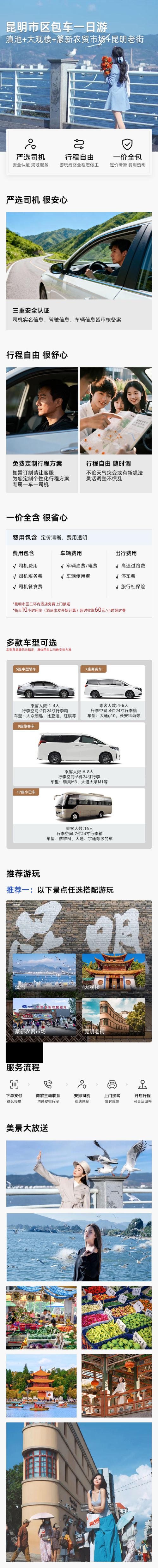 滇池+大观楼+篆新农贸市场+昆明老街包车一日游:纯玩私家团【[实力保障]昆明一日游集团品质严选线路,拥有自己的车队、全程品质把控,专业一手资源】