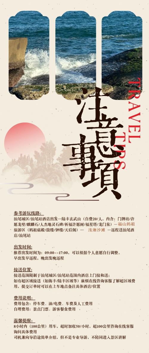 汕尾出发陆丰玄武山+福山妈祖+浅澳沙滩包车一日游|上门接送【一天内体验宗教古刹、妈祖信仰与碧海金沙,行程丰富多元不单调】