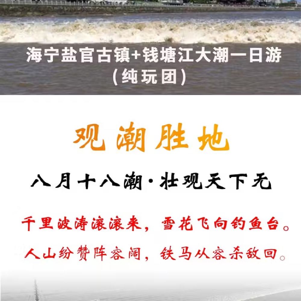 海宁盐官+钱塘江大潮+观潮胜地公园一日游:真纯玩零套路【1.品质保证 :纯玩团,不进任何购物店,无自费,无后顾之忧的一天高品质的玩海宁盐官。】