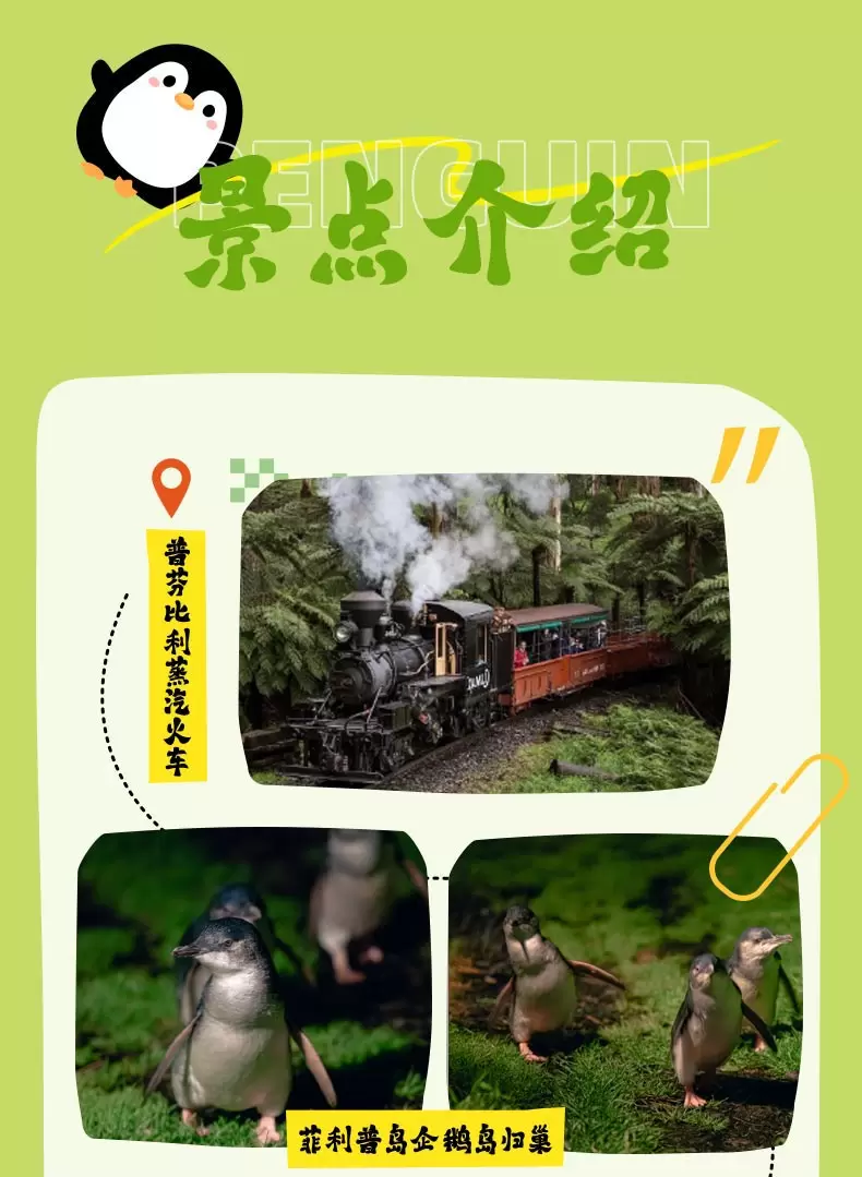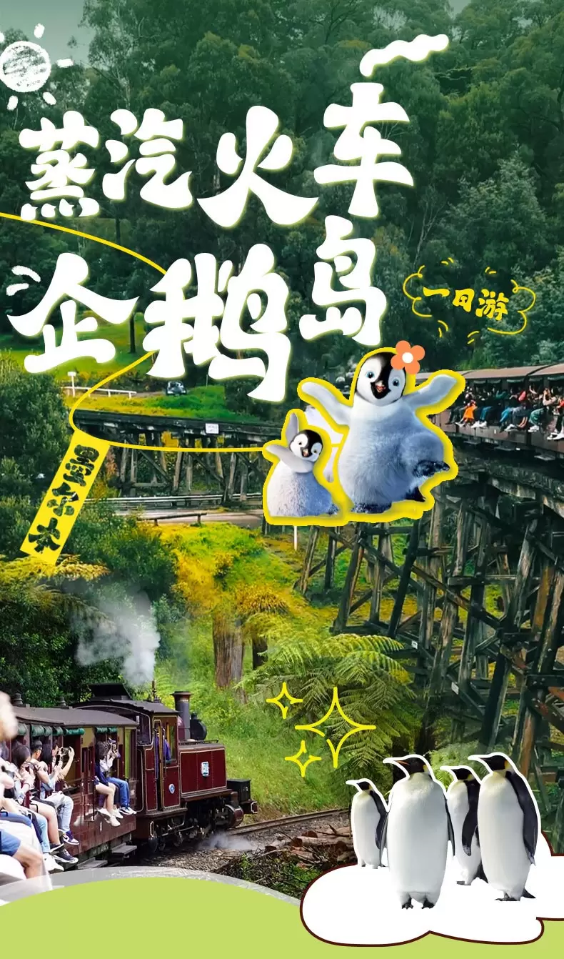 墨尔本普芬比利蒸汽火车+诺比司角中心+菲利普岛+潘尼巧克力工厂+玛璐考拉和动物公园一日游【13人豪华奔驰小团】