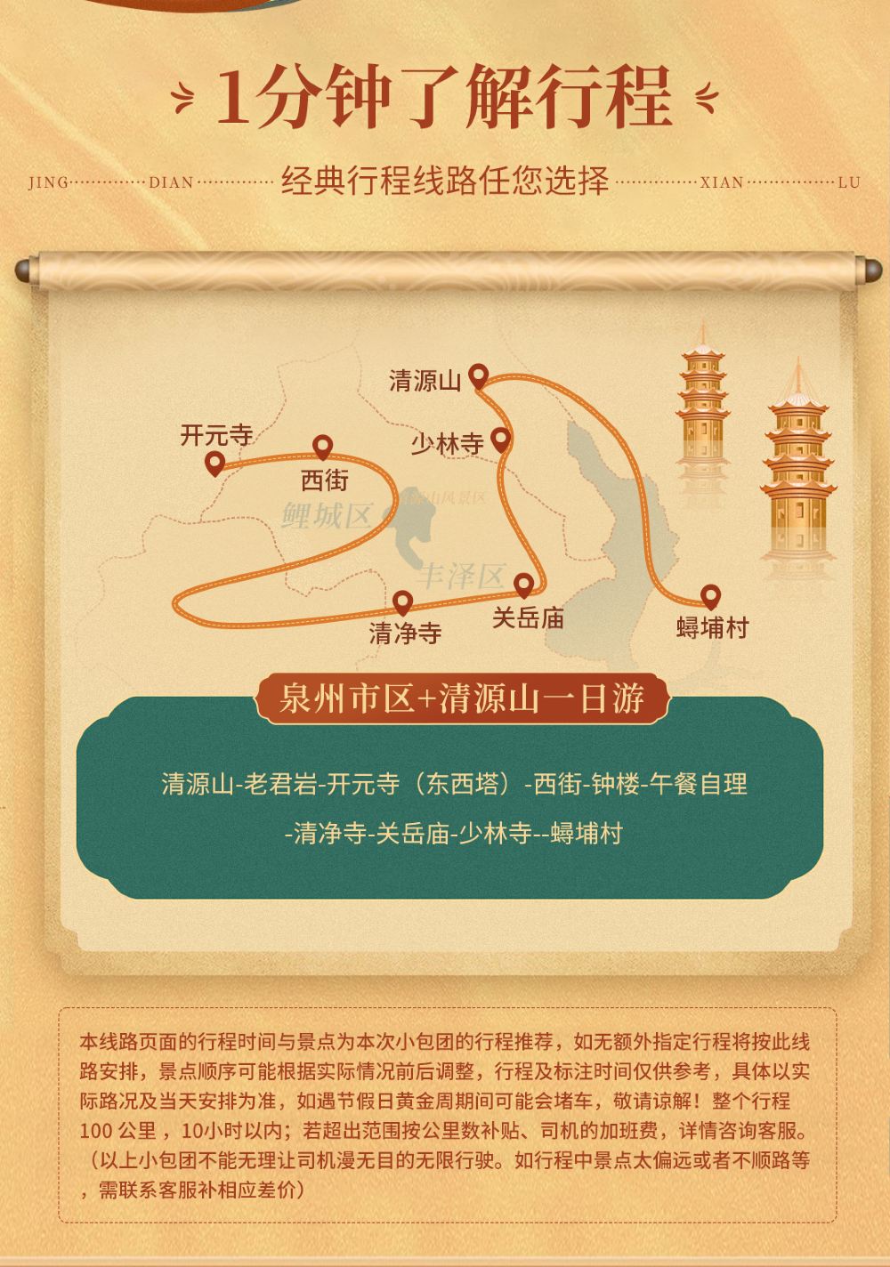 1、泉州鲤城区,丰泽区,洛江区部分地区可接送,无餐导讲解,仅包车接送