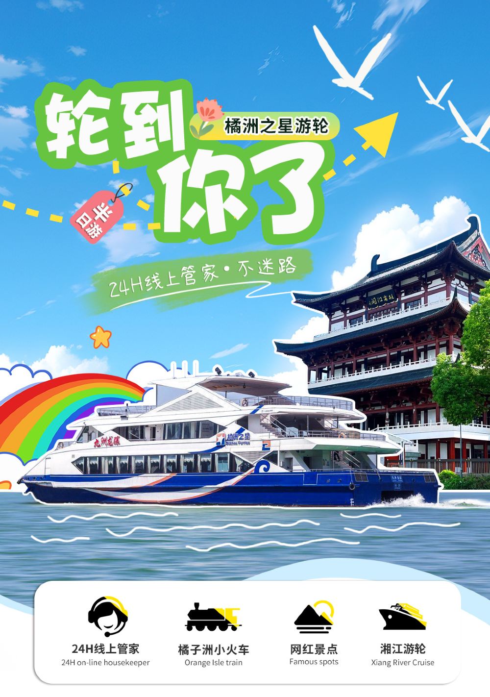 橘子洲+湘江游轮半日活动【橘洲码头夜间活动·赠橘洲小火车】【[极速出票 方便快捷]5分钟极速出票,登船二维码会直接发送到手机上,无需多余操作,超快超方便。】