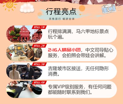 该产品可以散拼,可单独包团;司导为我社多年精选优秀司导,一定会为您解锁马六甲的正确玩法。