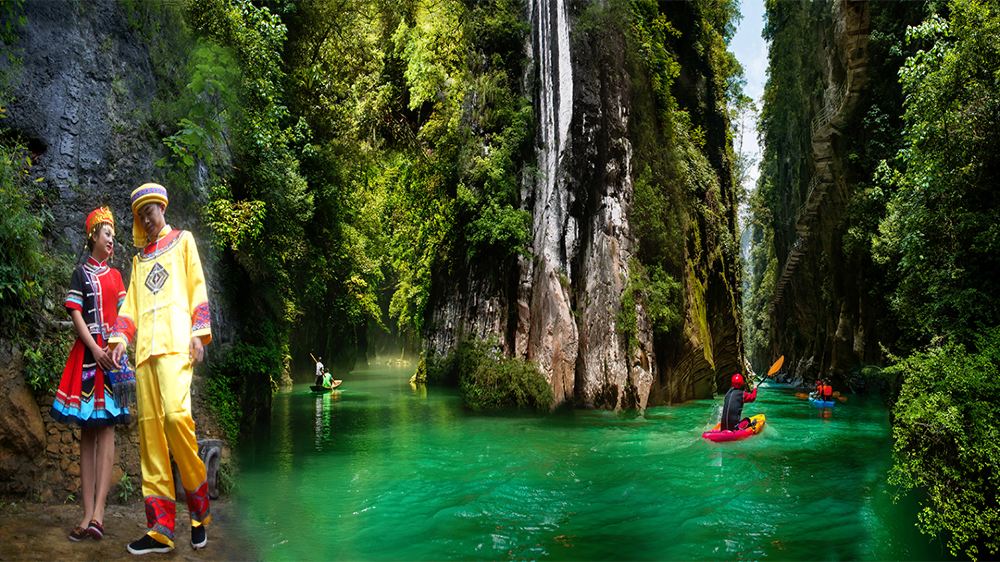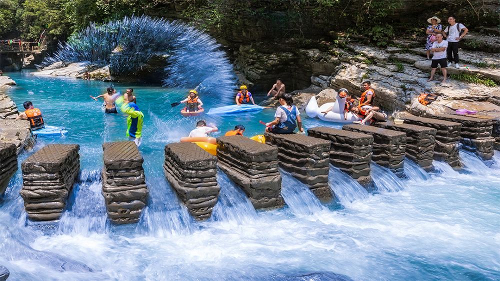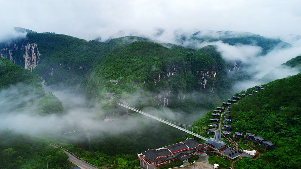 ▲ 恩施地心谷景区以“古、幽、险、奇”为特色,按照传统文化“三谷一古道”的大布局,分别是以险著称的舒心谷、以幽著称的洗心谷、以奇著称的问心谷,以及巴盐古道4大游览区组成