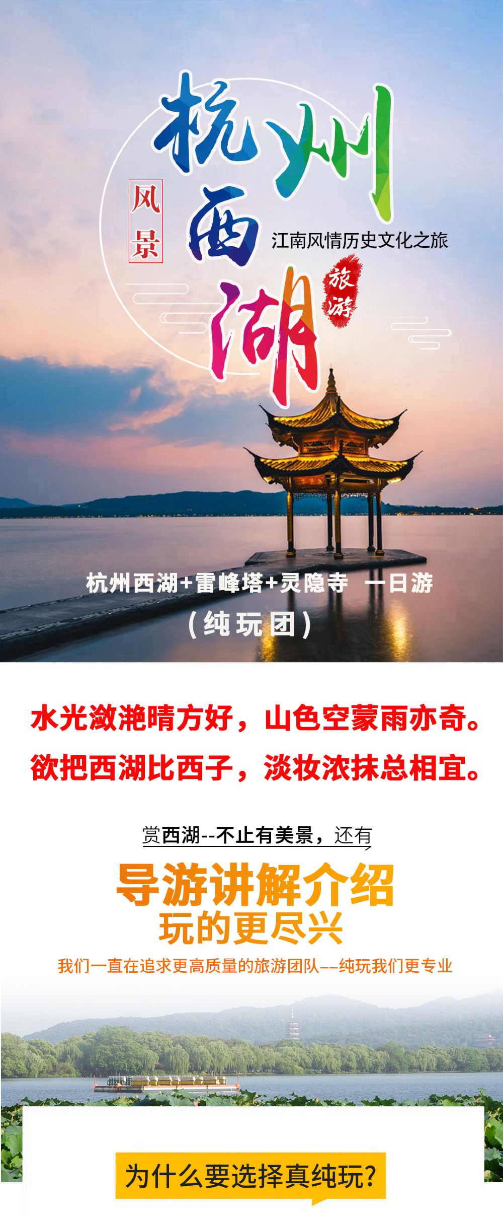 真纯玩:杭州西湖+西湖游船+雷峰塔+灵隐寺一日游+导游讲解【[保证纯玩]没有购物安排,没有强制消费,没有隐形消费,不去茶叶店、不去丝绸店。】