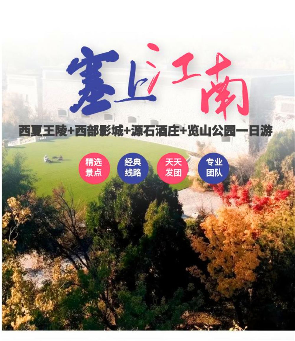 银川到西夏王陵+西部影视城+志辉源石酒庄+览山公园一日游【源石酒庄品鉴3款基础酒】