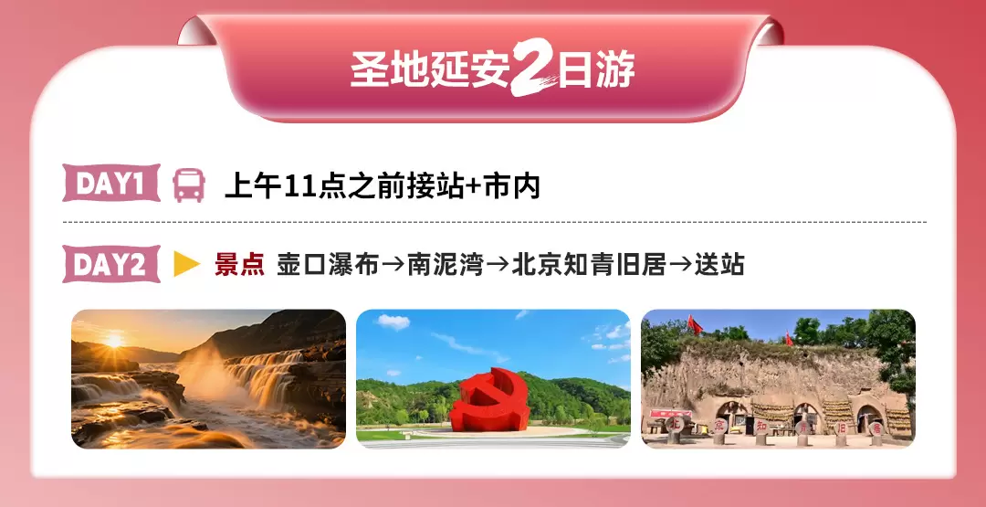 延安陕西黄河壶口瀑布+南泥湾风景区+宝塔山+延安革命纪念馆+杨家岭革命旧址二日游【赠送接/送站·零食伴手礼】