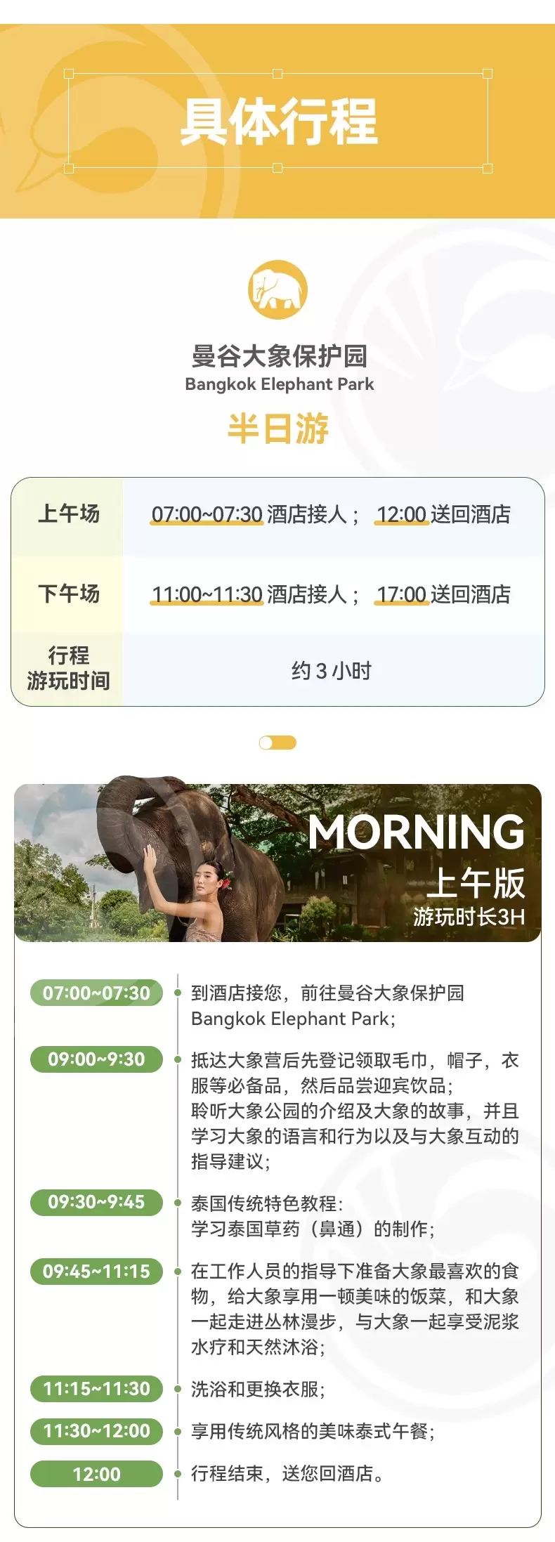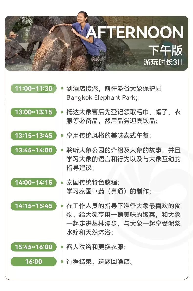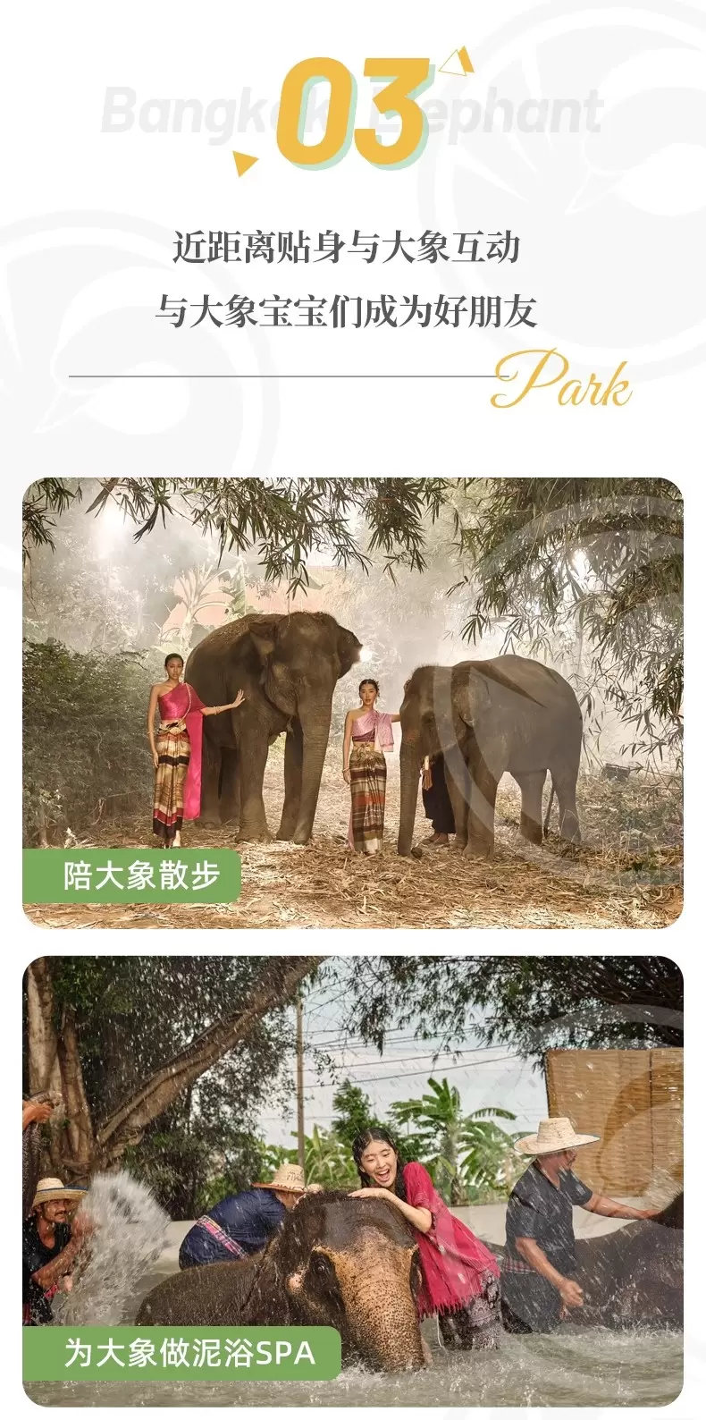 曼谷大象营保护园半日游,可选上午场/下午场,指定区域酒店接送,多个套餐可选