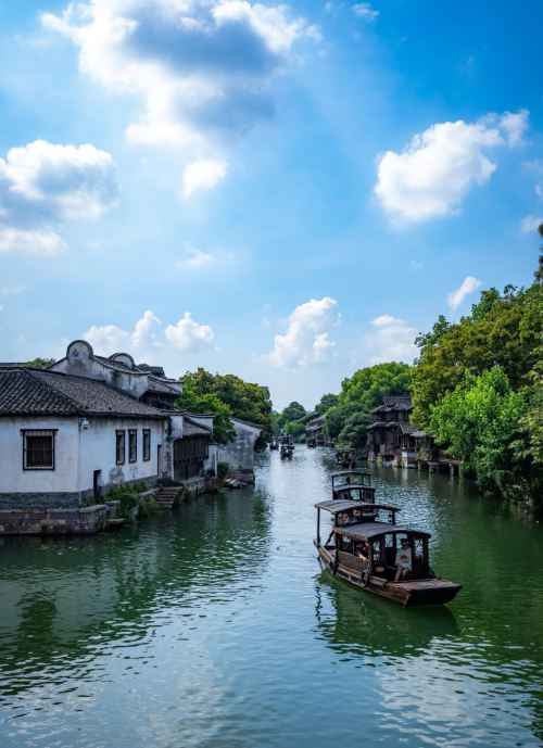 ▲ 乌镇东栅,兰亭映照白云,碧绿水道上乌篷船悠然穿行。粉丝群带娃东民居依水而建,绿树与古旧木屋相映成趣,一副鲜活的“小桥流水人家“江南水乡画卷””