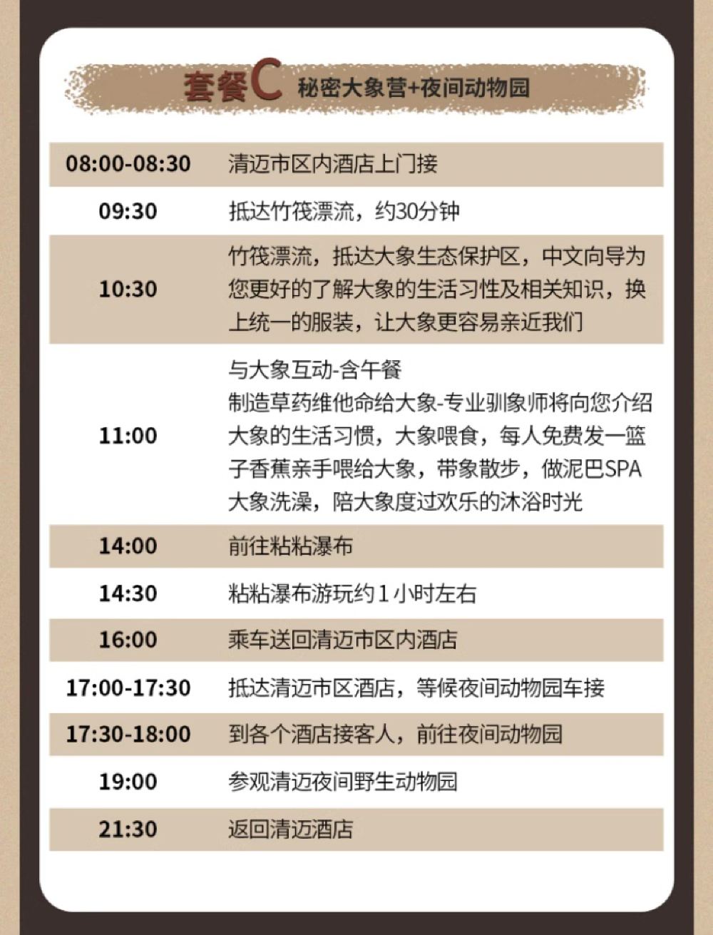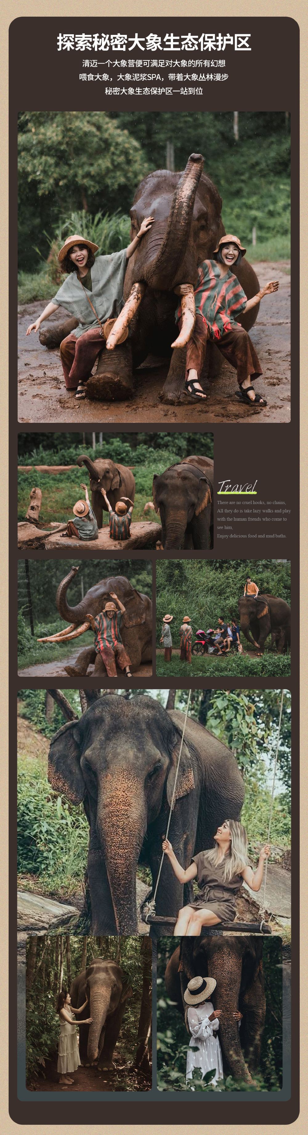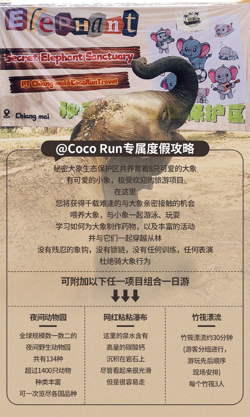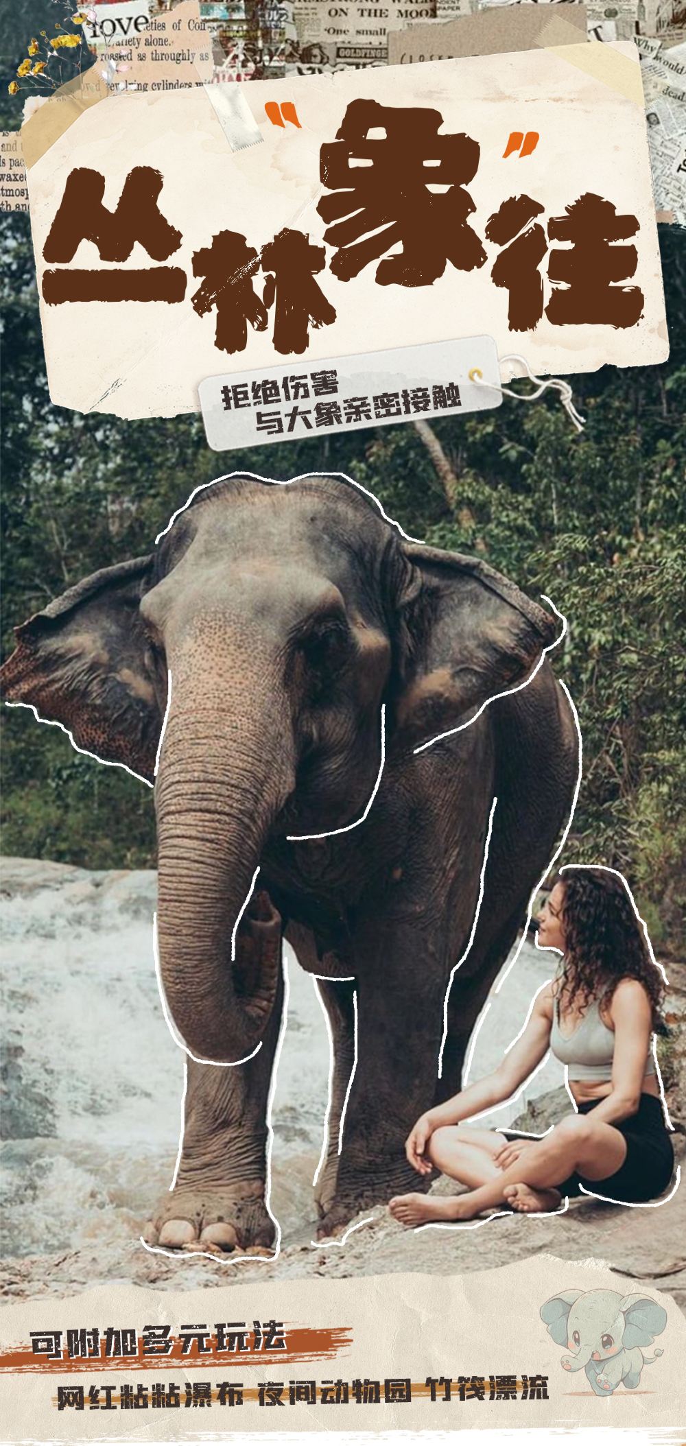 泰国清迈秘密大象营一日游:搭配粘粘瀑布/竹筏漂流/夜间动物园【大象营+粘粘瀑布:半日游,景区内中文讲解,为大象做泥浆浴及SPA】