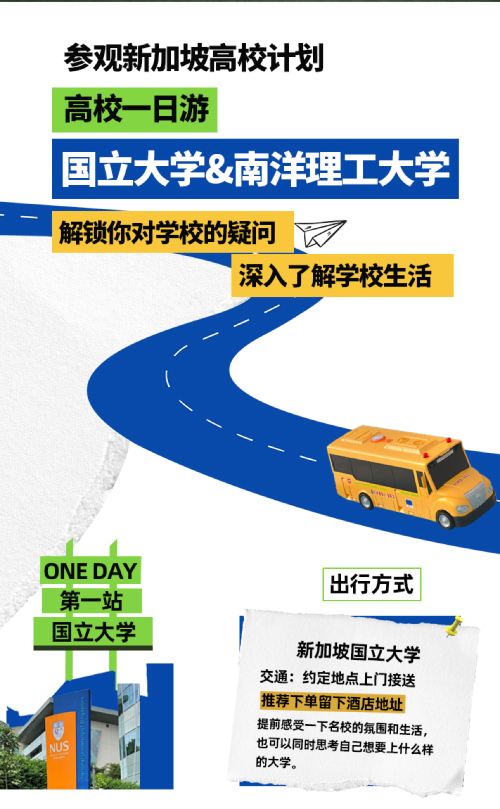 新加坡国立大学+南洋理工大学一日游 中文讲解陪同用车可选【暑假平日亲子带娃,提前让孩子体验大学生活,激发对大学生活的向往,教育环境和体验生活可以改变未来~】