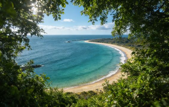 ▲ 半月湾,半月湾有全国较大的岩雕艺术作品 ——“大地艺术”,也称 “鱼龙窟” 岩雕,由画家洪世清创作,170 余件作品依形取势,遍布滩头、水中,还有书法大师的篆刻、书法精品镌刻在奇石怪礁上