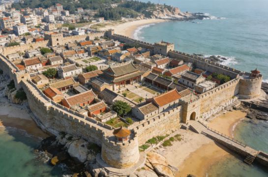 ▲ 崇武古城,采用当地花岗岩石砌筑,城周长 2567 米,城基宽 4 米,含女墙高 7 米。四方设门,上建门楼,东、北、西三面有月城,四周设烽火台五座,构成了完整的军事防御工程体系