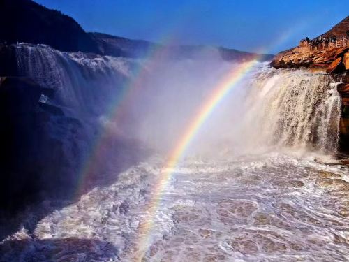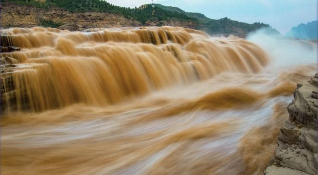 ▲ 黄河奔流至此,两岸石壁峭立,河口收束狭如壶口,故名壶口瀑布。