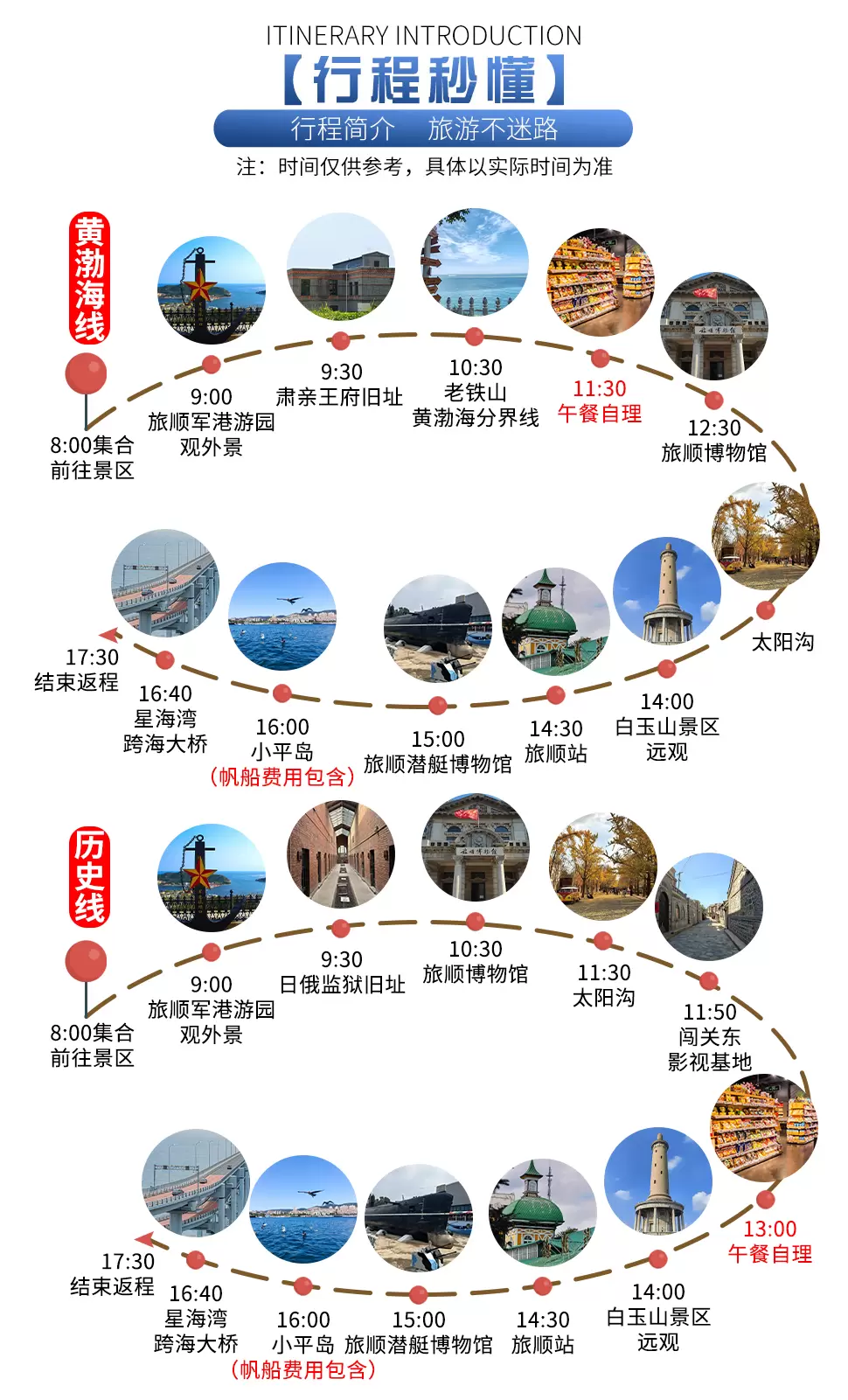 大连闯关东影视基地+老铁山黄渤海分界线+旅顺博物馆+太阳沟+白玉山景区+小平岛+星海湾跨海大桥一日游【大连发】