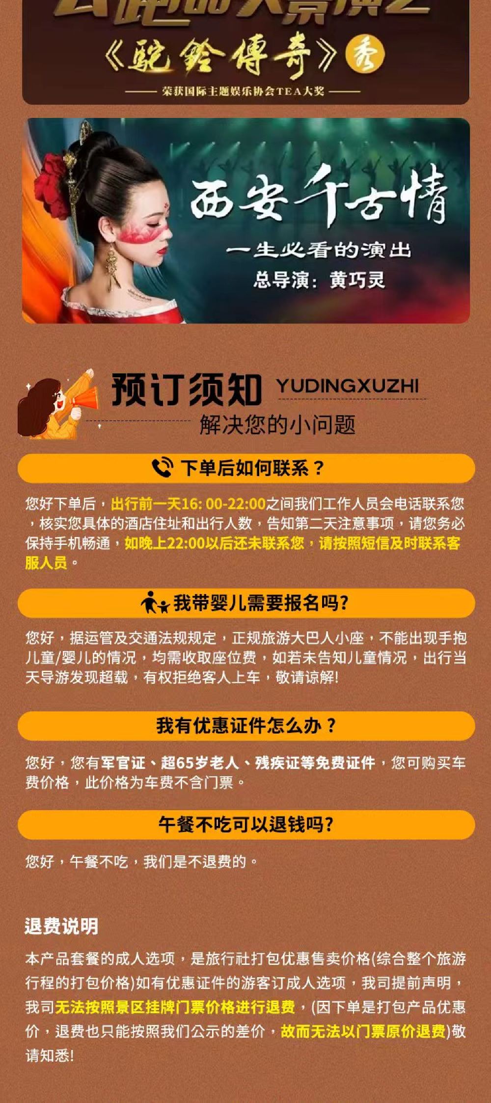 【退费说明】套餐优惠打包价格,若持有优惠证件下单,无法按照景区挂牌价格退费,按照您实际支付价格,扣除您产生的费用来退。