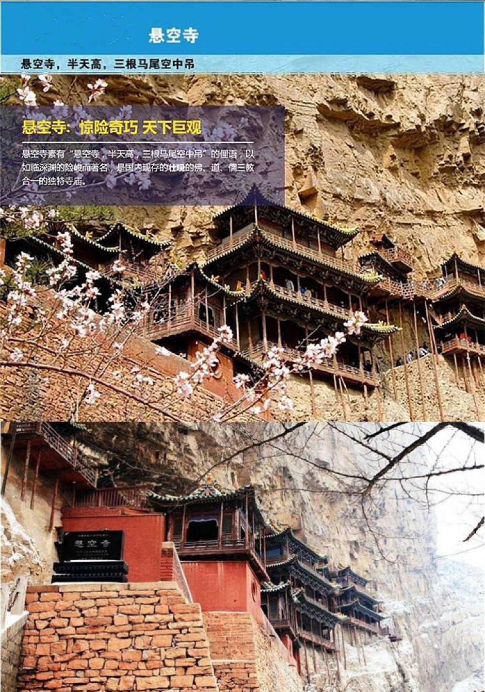 1、山西大同云冈石窟+悬空寺+恒山+应县木塔+雁门关多套餐包车一日游