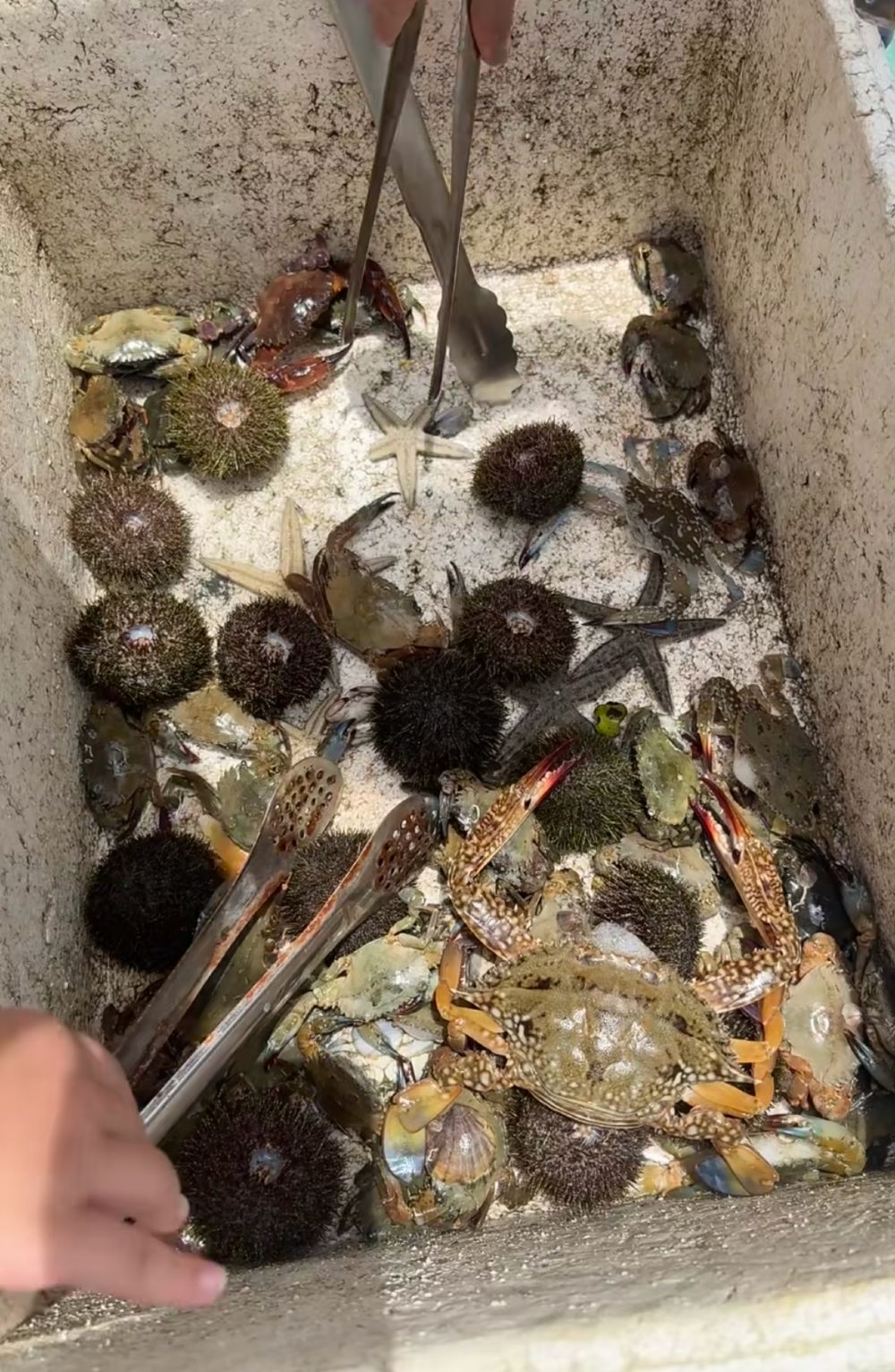 赶海收获:常规可捕获海胆,小螃蟹,海星及多种海螺,运气佳时能偶遇小鱼群,所有收获可自行带走。