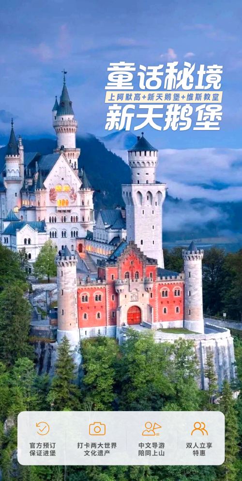 慕尼黑新天鹅堡一日游|维斯教堂陪同上山打卡两大世遗产双人立减【[行程加游·维斯教堂](世界文化遗产)一日三大景点 新天鹅堡 壁画村 维斯教堂 加量不加价】