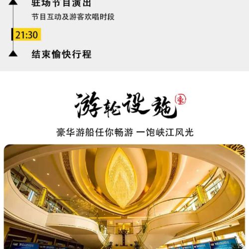 2.关于游船:(长江三峡系列游船为观光型游船,游船提供的免费座位有限,不保证一人一座)