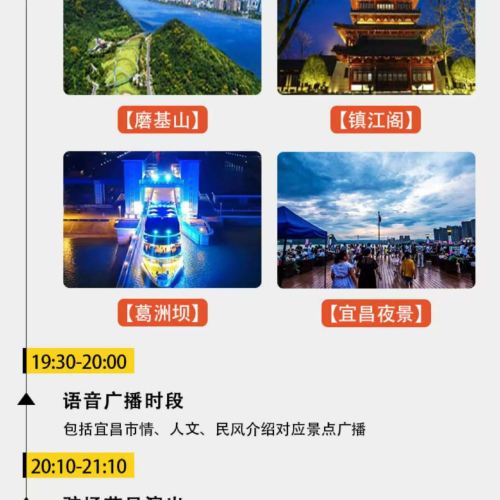 1.关于行程:此线路仅含单程夜游船票和返程汽车票,船上为统一广播讲解,无导游陪同服务,请按短信或约定时间前往三峡游客中心凭下单时预留手机和客人身份证检票登船。